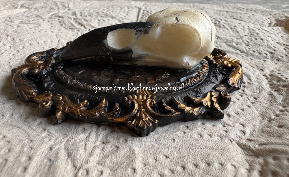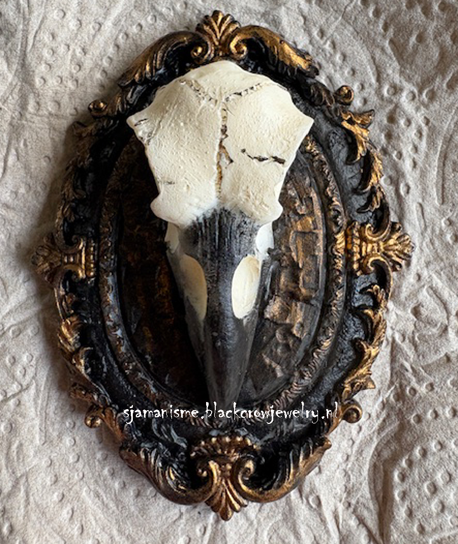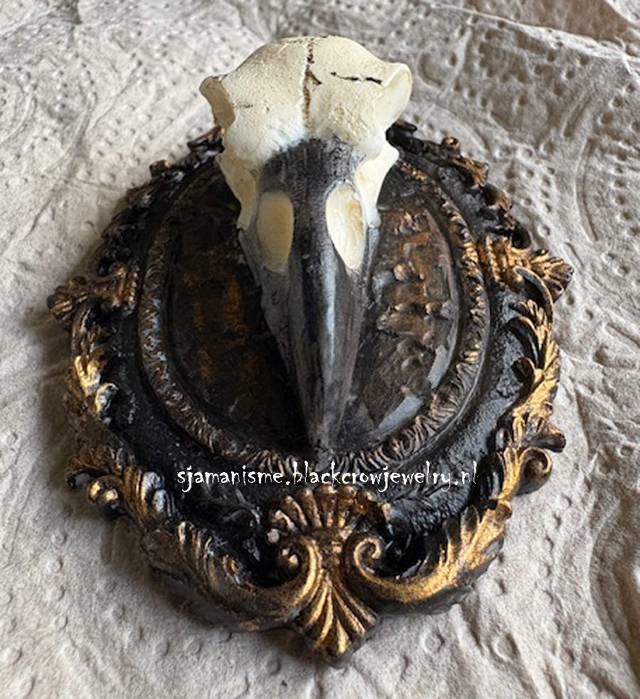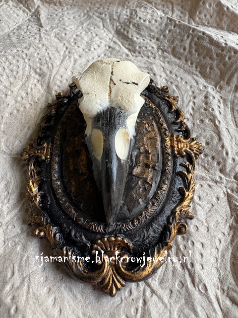 Leuke handgemaakte crow skulls op een gothic schildje.