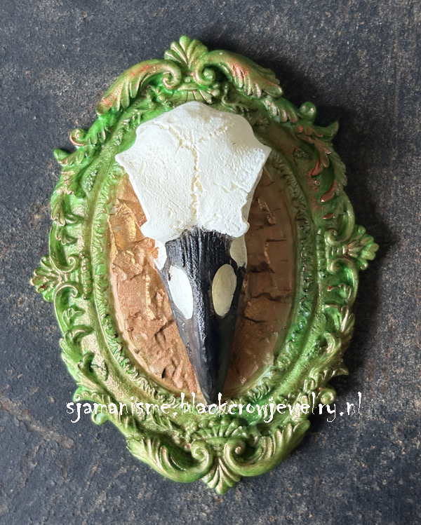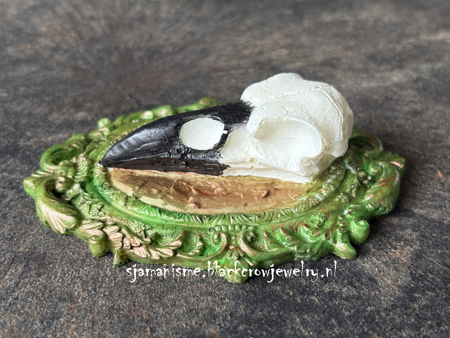 Leuke handgemaakte crow skulls op een gothic schildje.