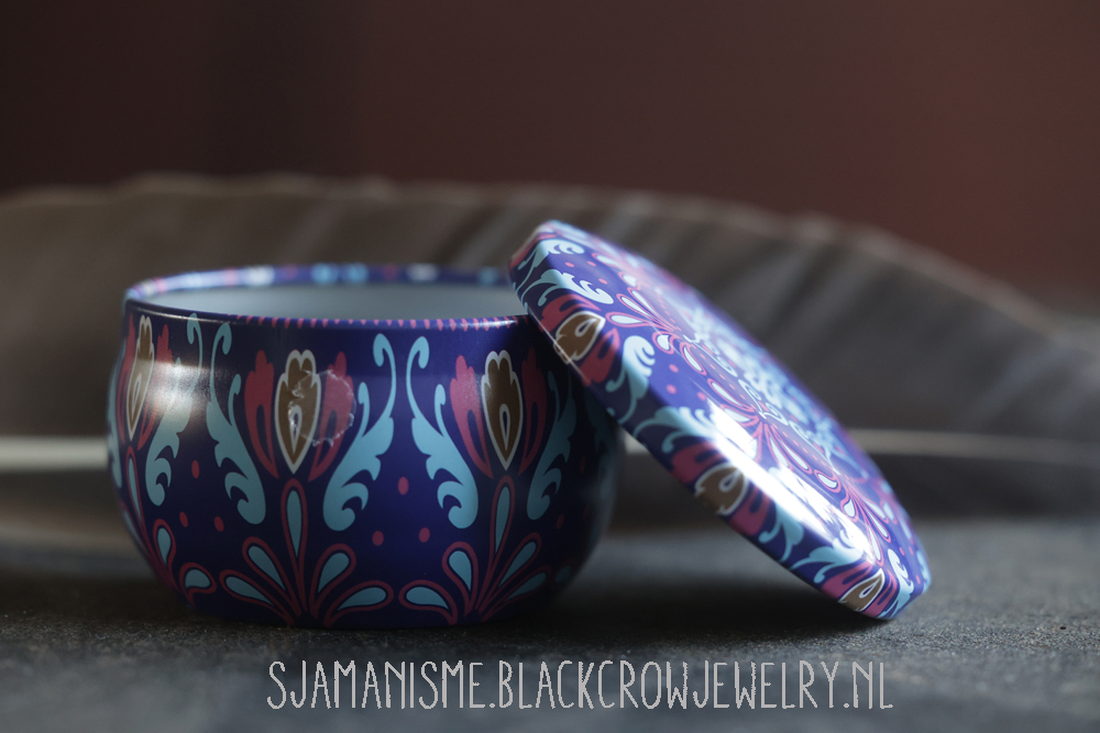 leuk klein blikje met ongeveer 5-6 gram witte salie en een smudgeveer