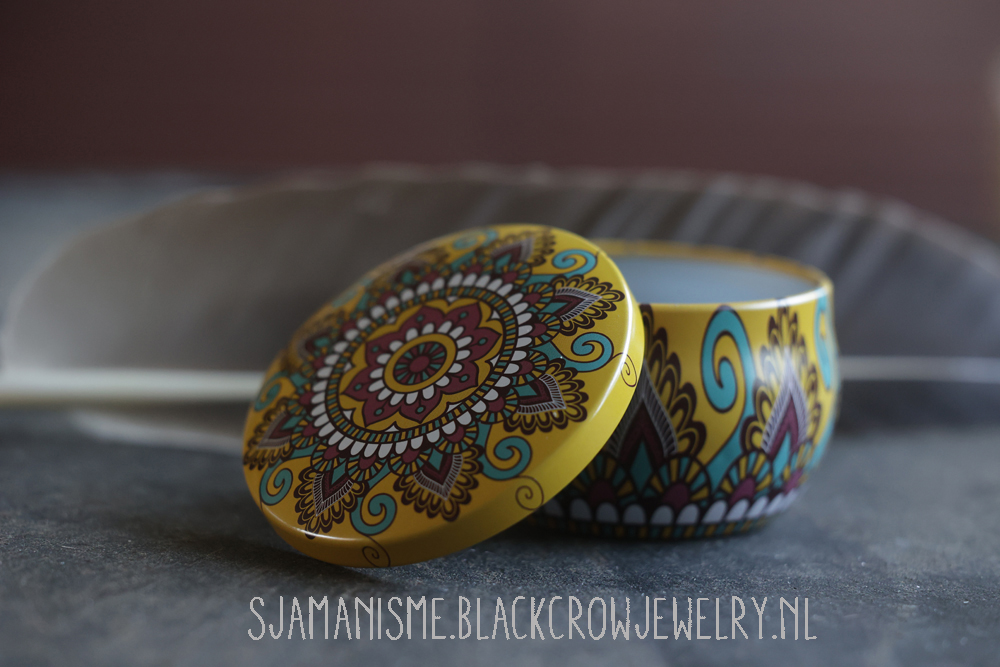 leuk klein blikje met ongeveer 5-6 gram witte salie en een smudgeveer