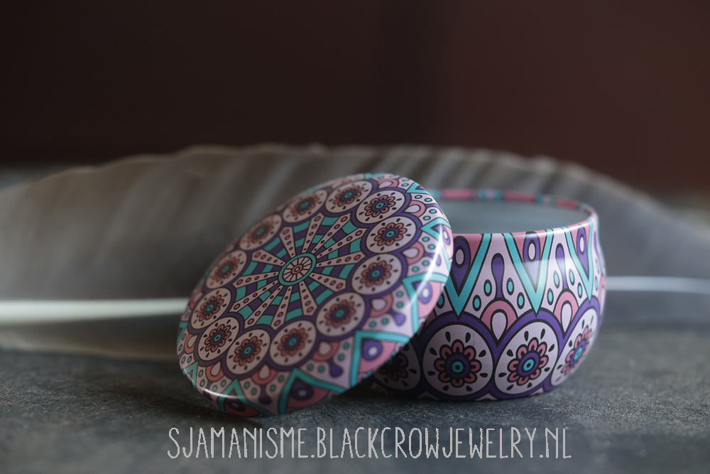 leuk klein blikje met ongeveer 5-6 gram witte salie en een smudgeveer