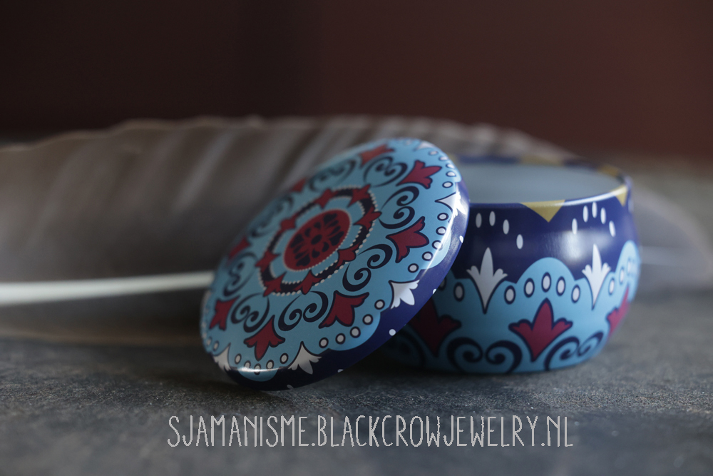leuk klein blikje met ongeveer 5-6 gram witte salie en een smudgeveer