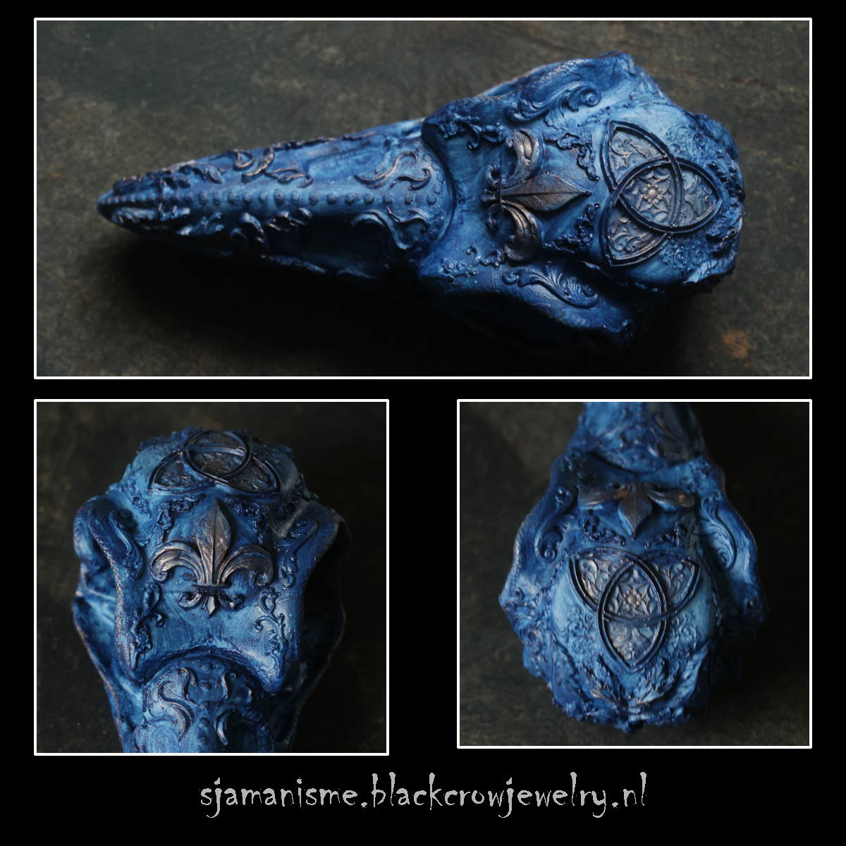 De kleur is samengestelde kleur van drie kleuren blauw met brons wax op de details.